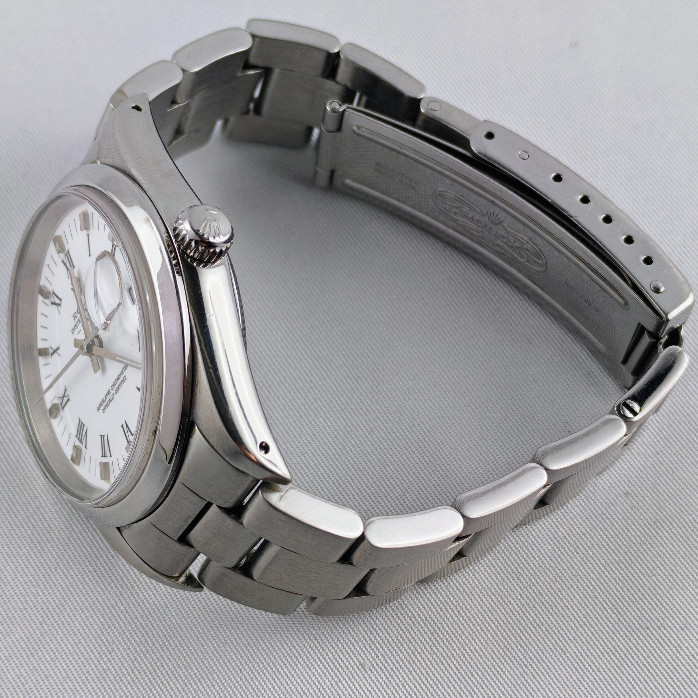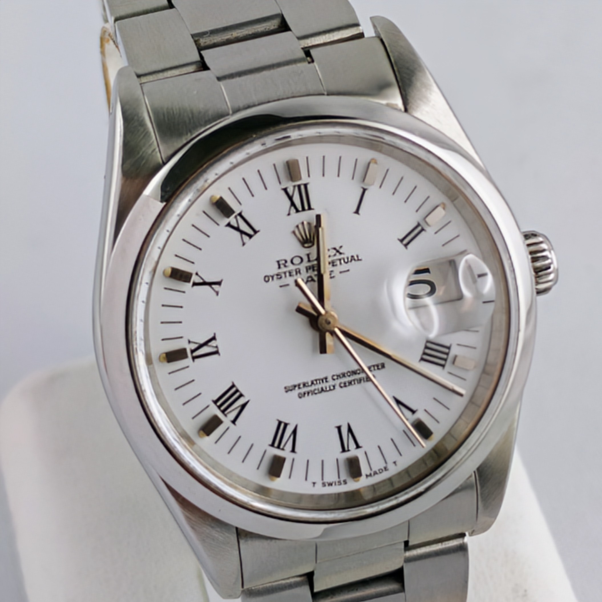 Classico ed elegante, questo date della Rolex monta un quadrante bianco latte con indici e piccoli numeri romani, le condizioni sono molto buone, piccoli segni appena visibili, sprovvisto di scatola e garanzia ufficiale