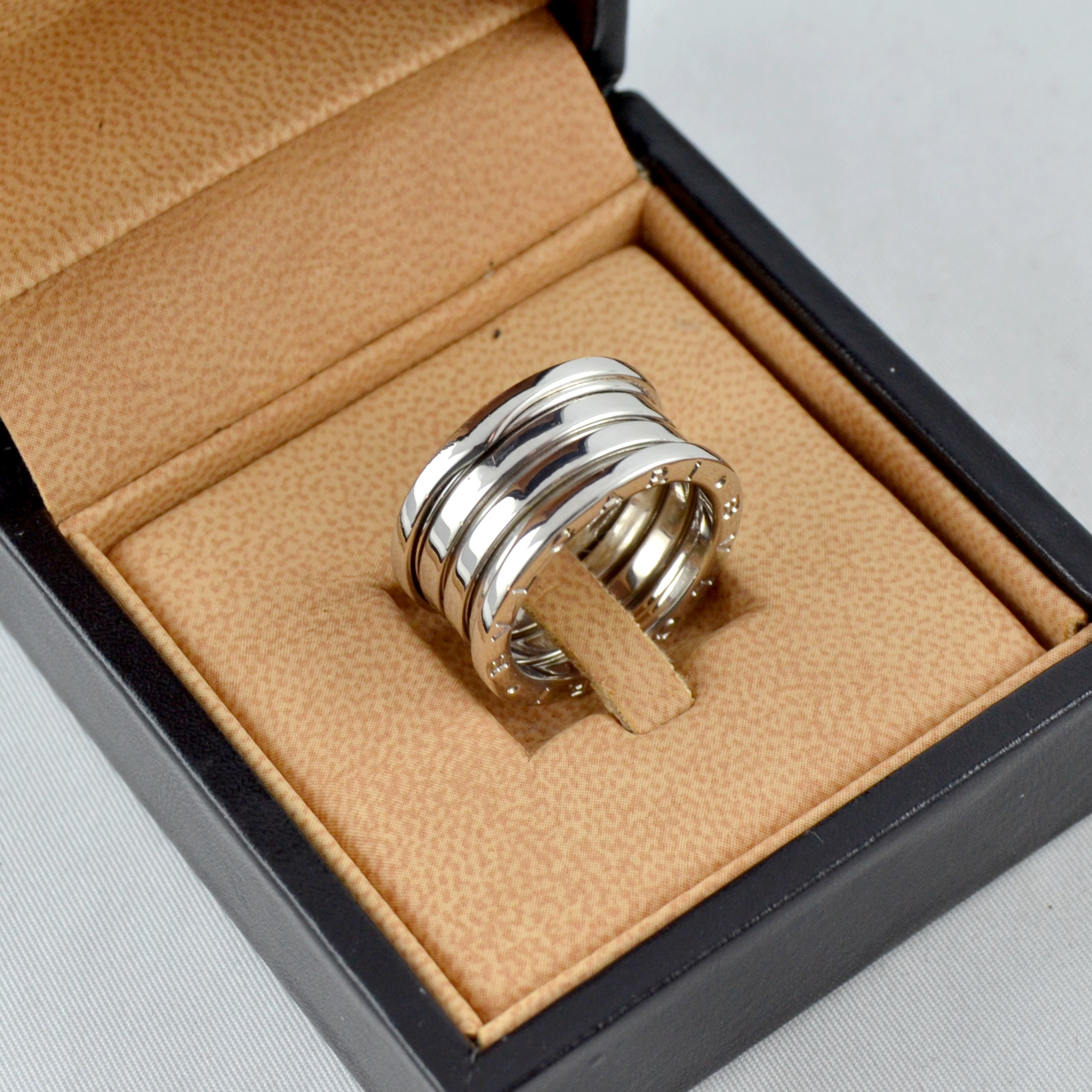 L’anello appartiene alla collezione “B0” ed è interamente in oro bianco.