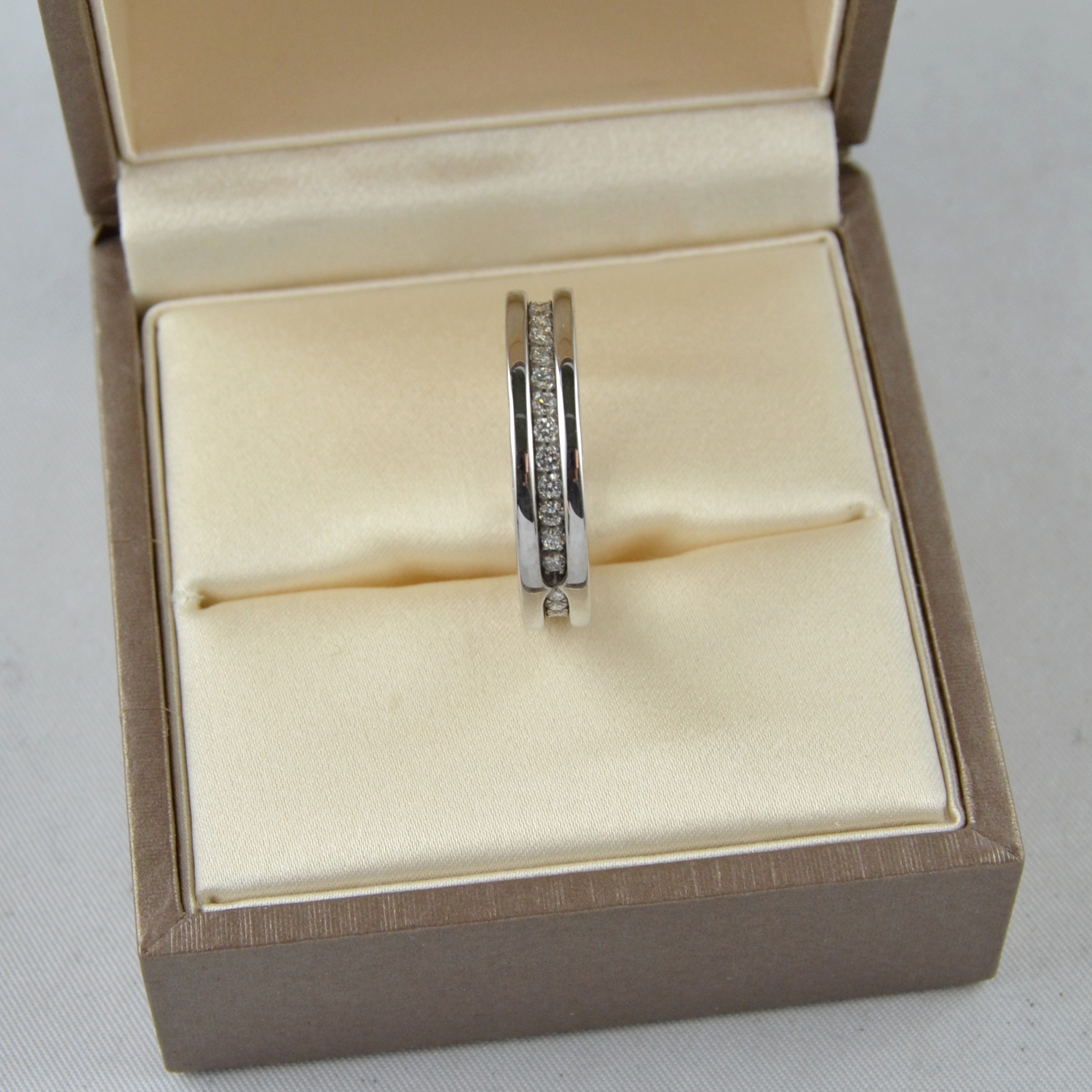 Anello collezione B01 in oro bianco con un giro di diamanti ct 0.45, la sua misura è 15.