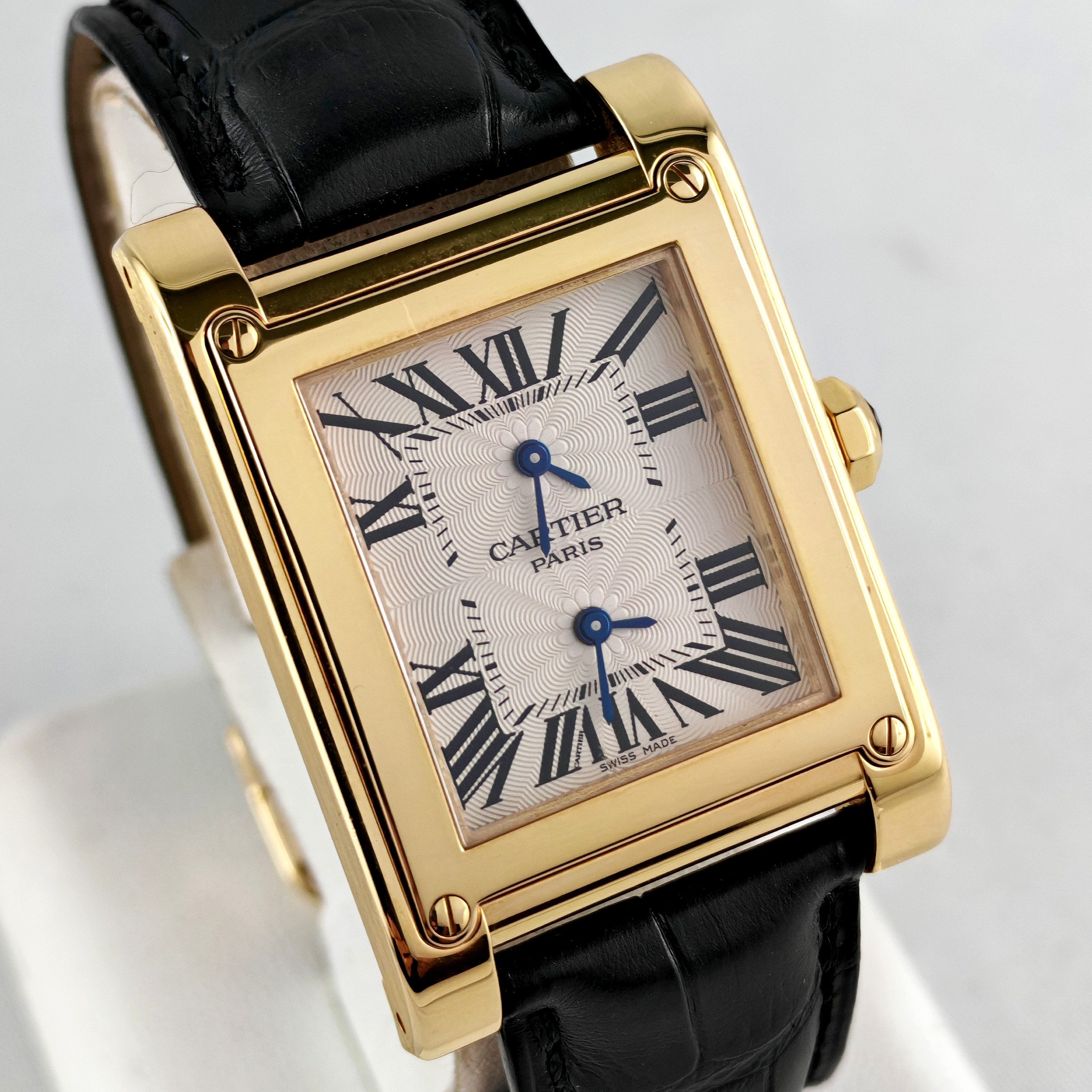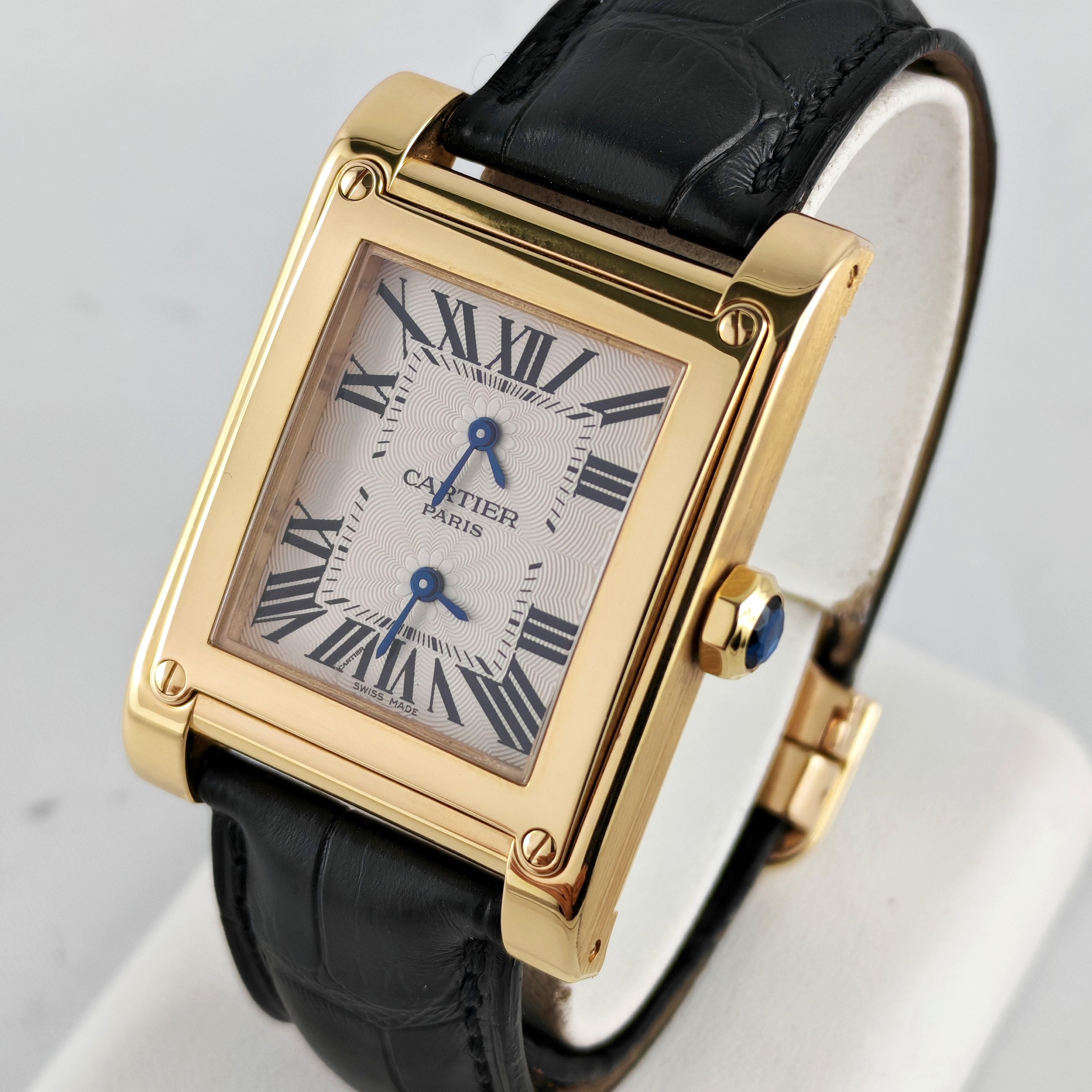 Vi presentiamo un fantastico Cartier Dual Time Tank con referenza 2551 e corredato del suo full set.