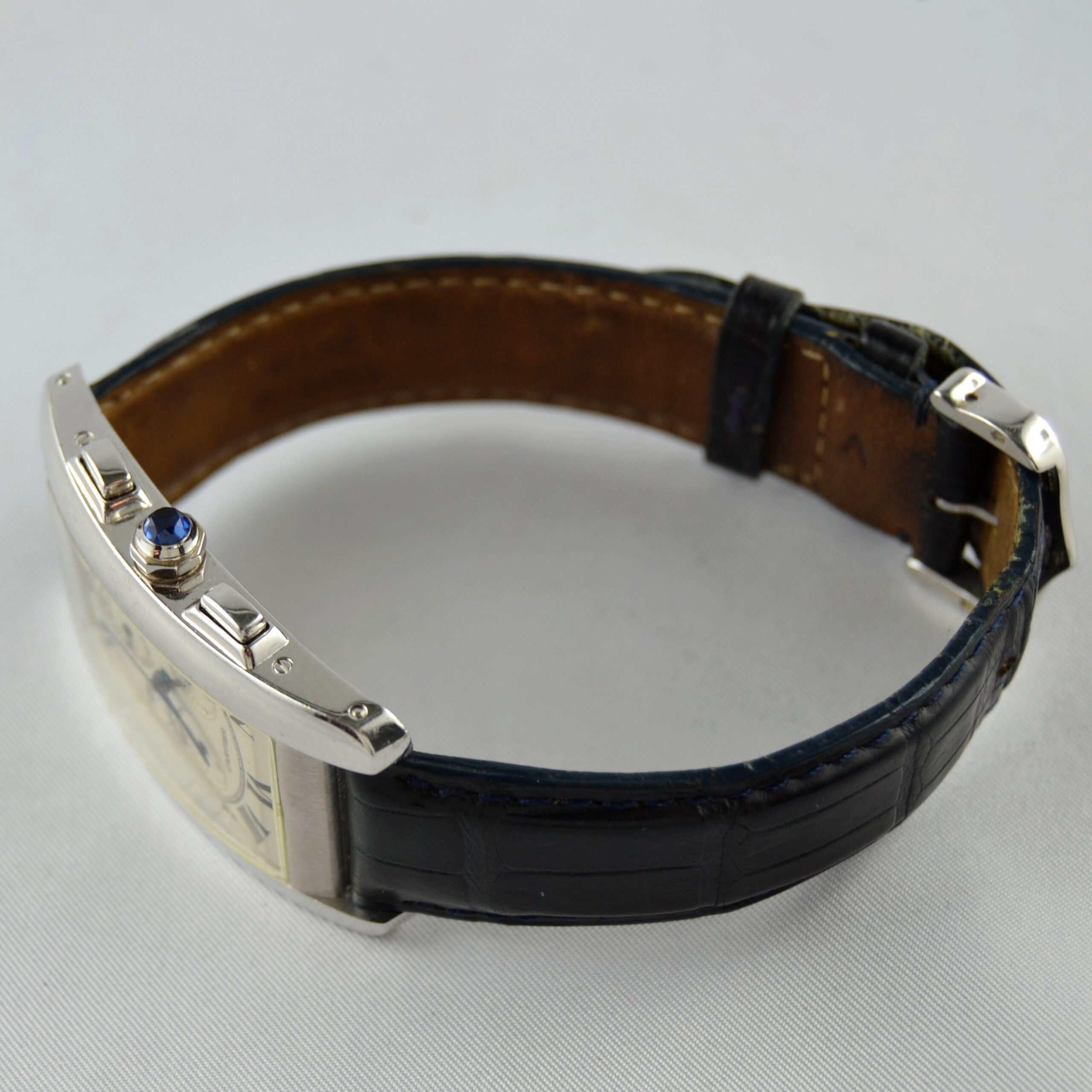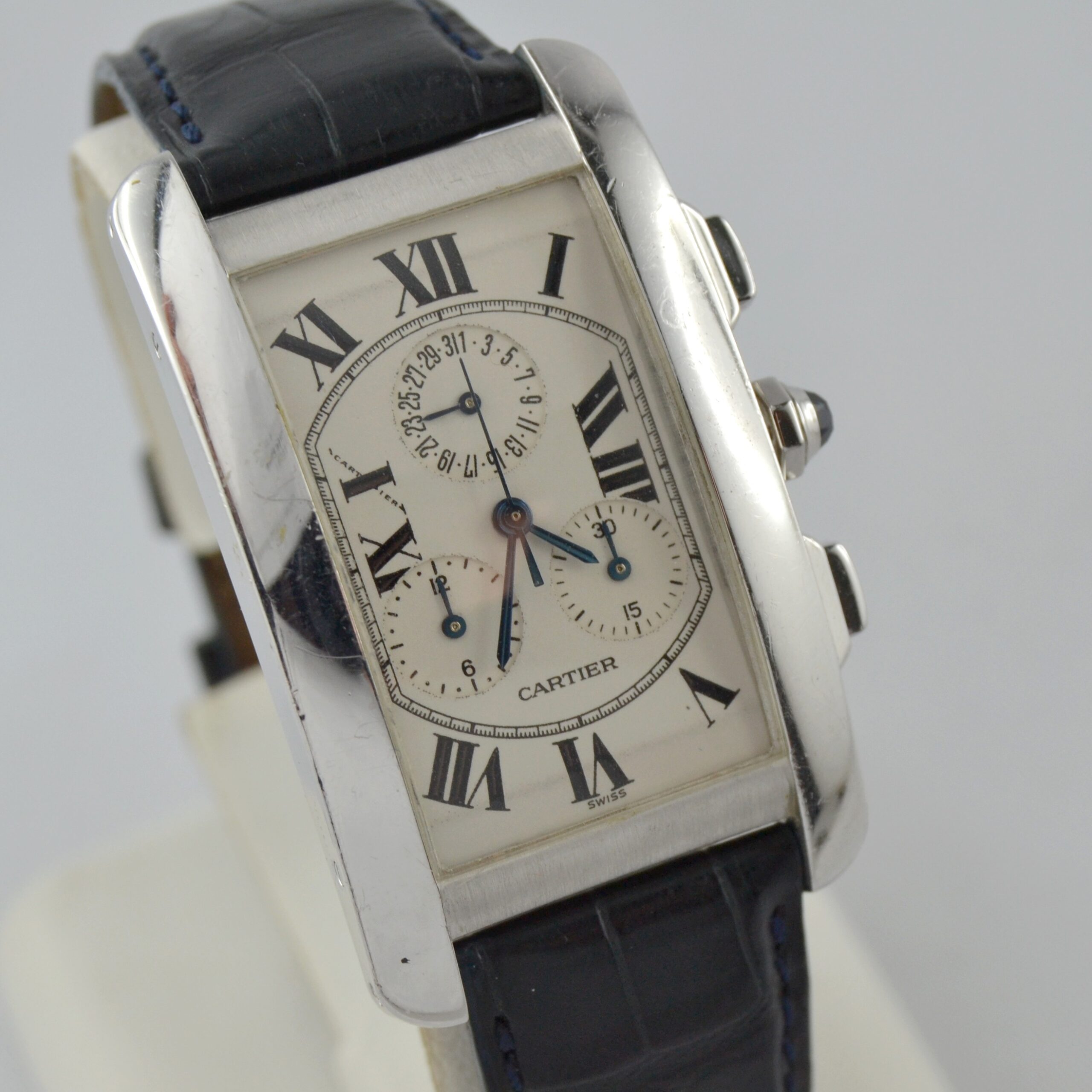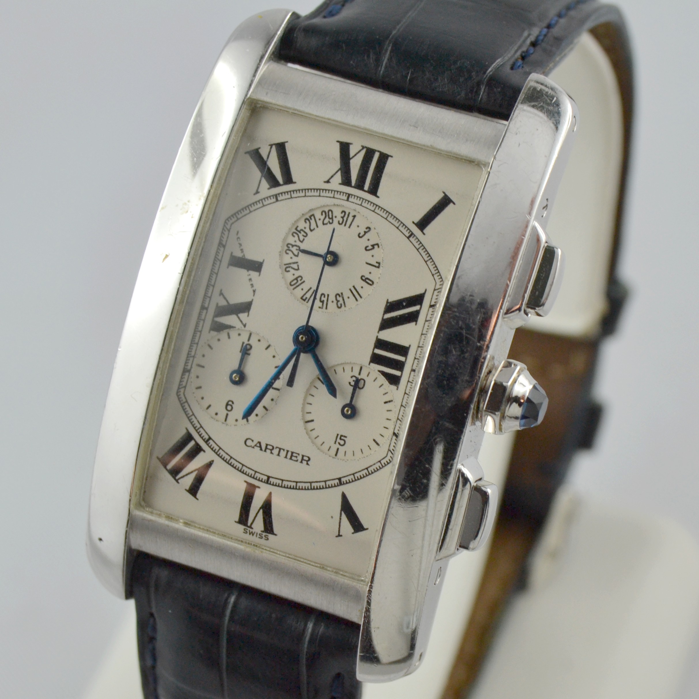 Vi presentiamo un elegantissimo Cartier, appartenente alla longeva linea “Tank”, in particolare si tratta del modello “Americaine Chronograph”. Con referenza 2312, monta un movimento elettromeccanico che aziona un calendario perpetuo.