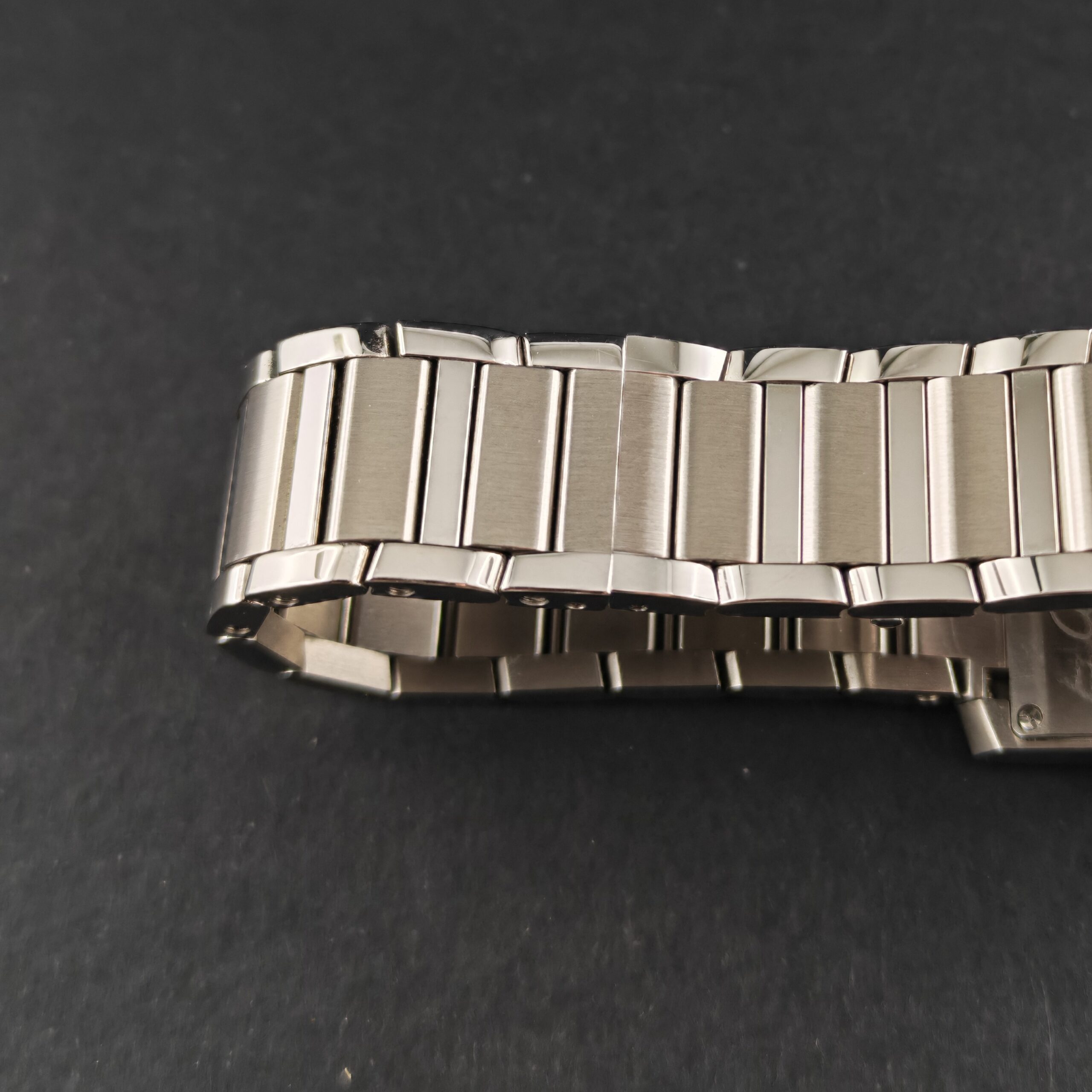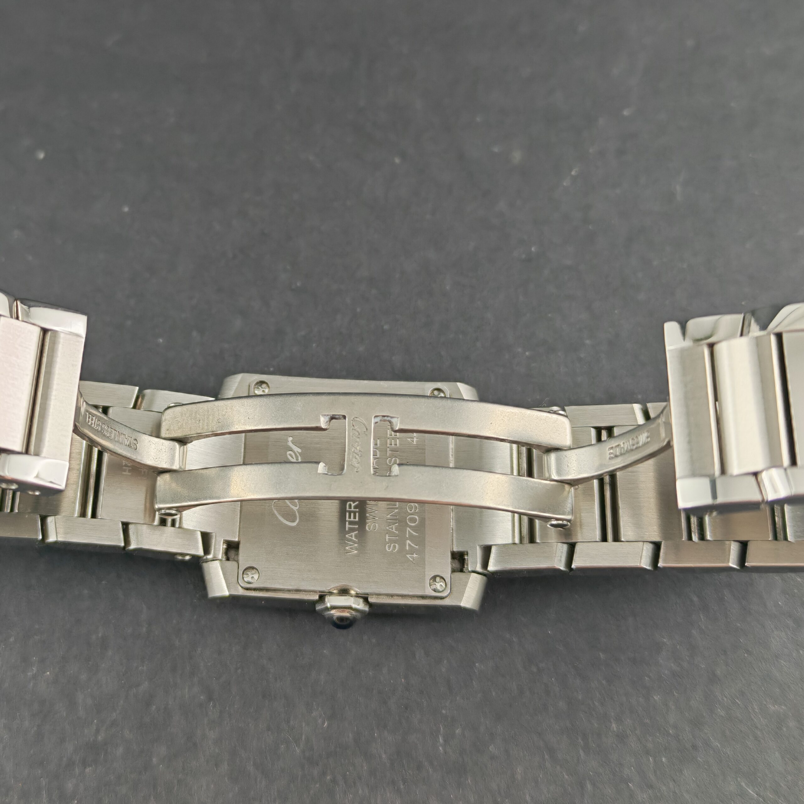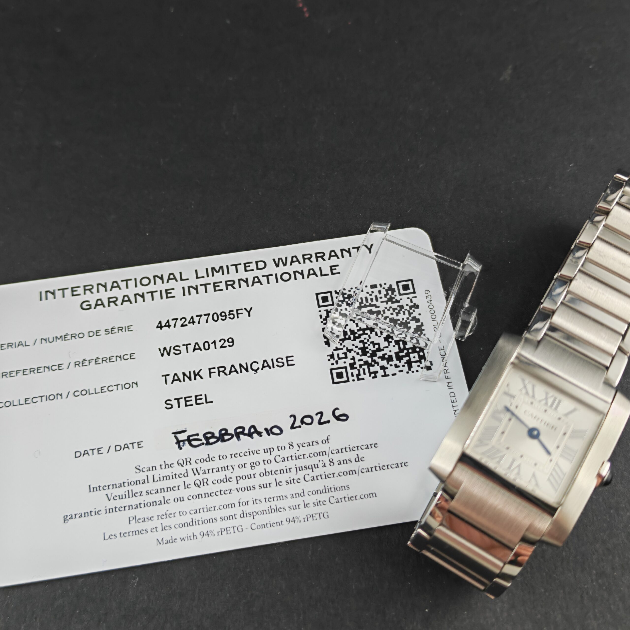 Vi presentiamo un magnifico Cartier Tank Française, con la referenza WSTA0129 che venne introdotta nel 1996: la linea Française, infatti, ha modernizzato il classico design Tank integrando perfettamente la cassa con un bracciale a maglie che ricorda i cingoli di un carro armato.