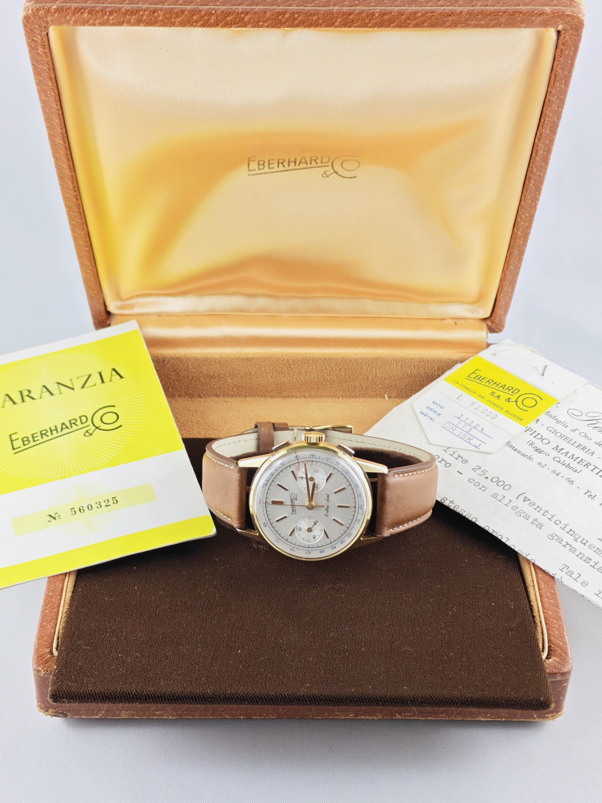L’orologio, mai lucidato, presenta non solo il corredo, ma anche il tag, la scatola e la fattura di acquisto, rendendo questo set una vera rarità!