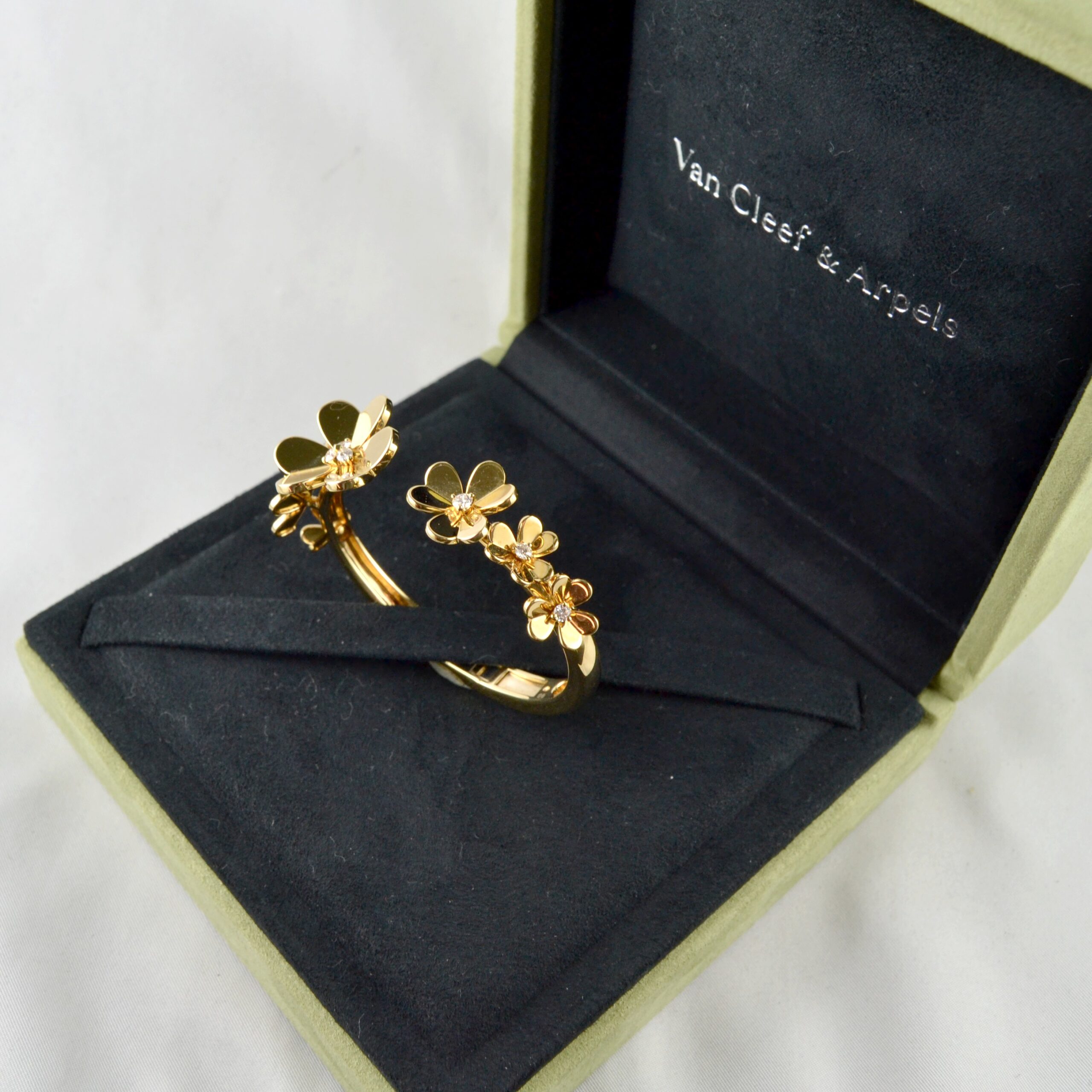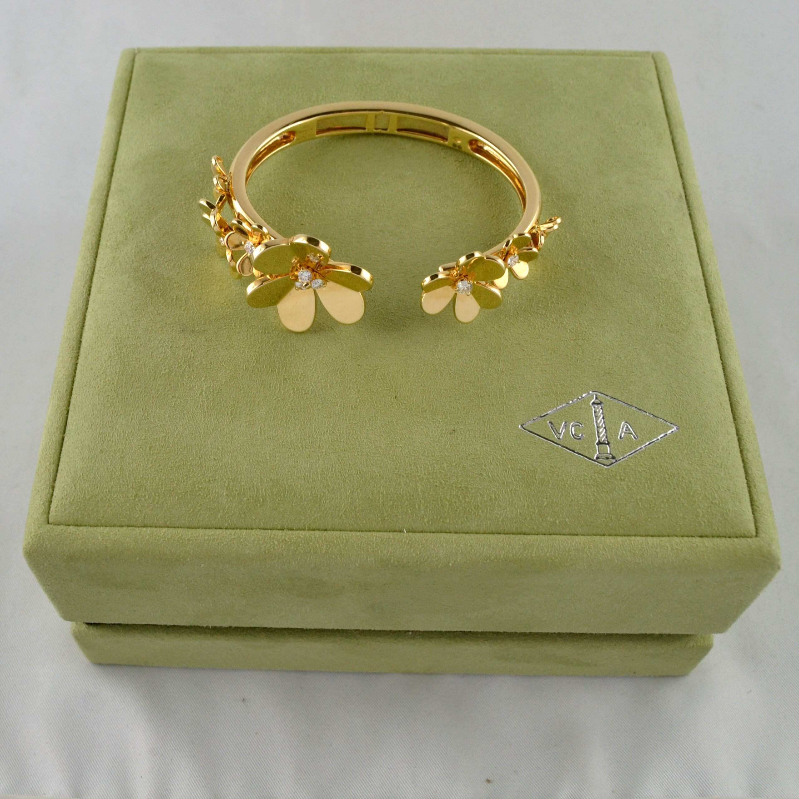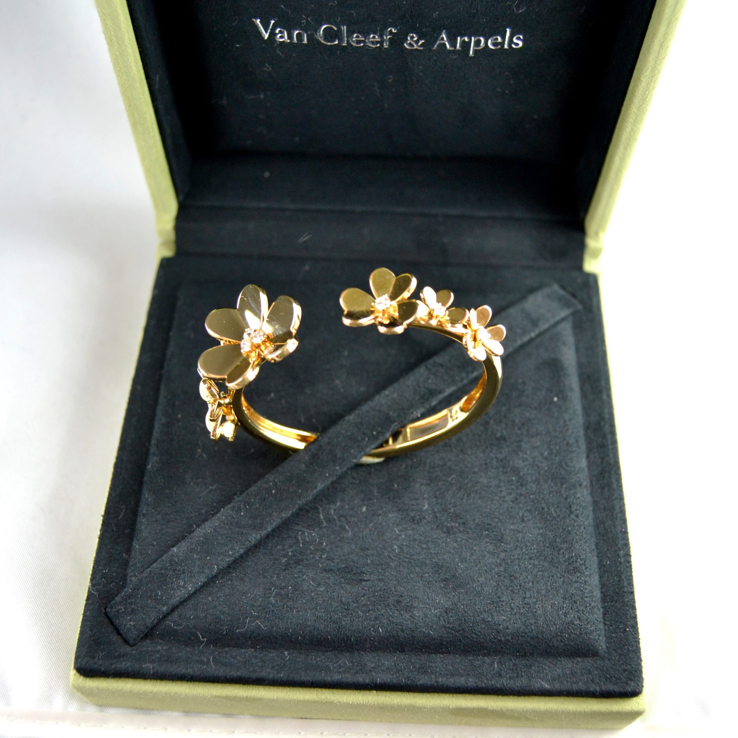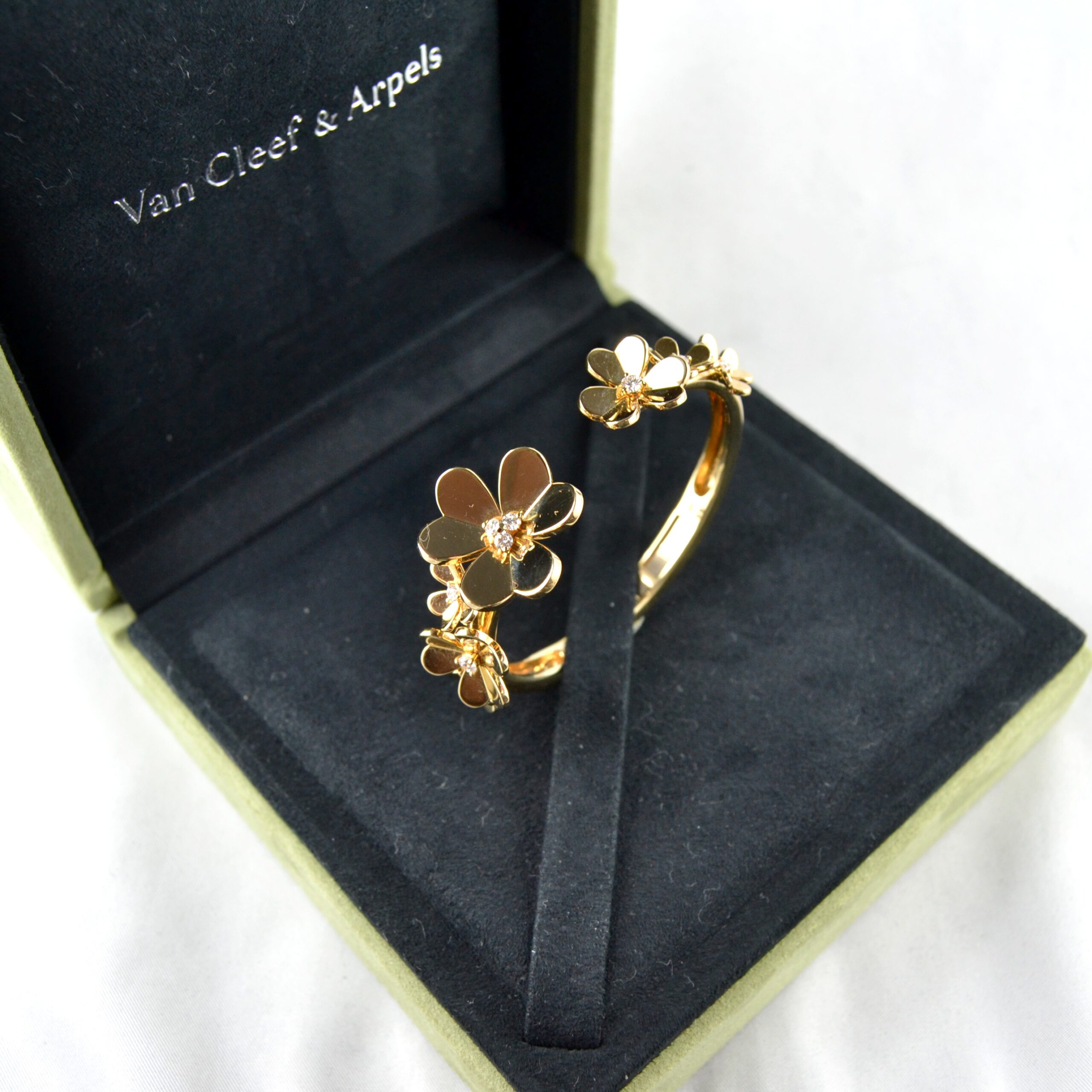 Vi presentiamo questo stupendo bracciale Van Cleef denominato “Frivole”, fatto di oro giallo 18 e brillanti che fanno da “pistillo” ai fiori.