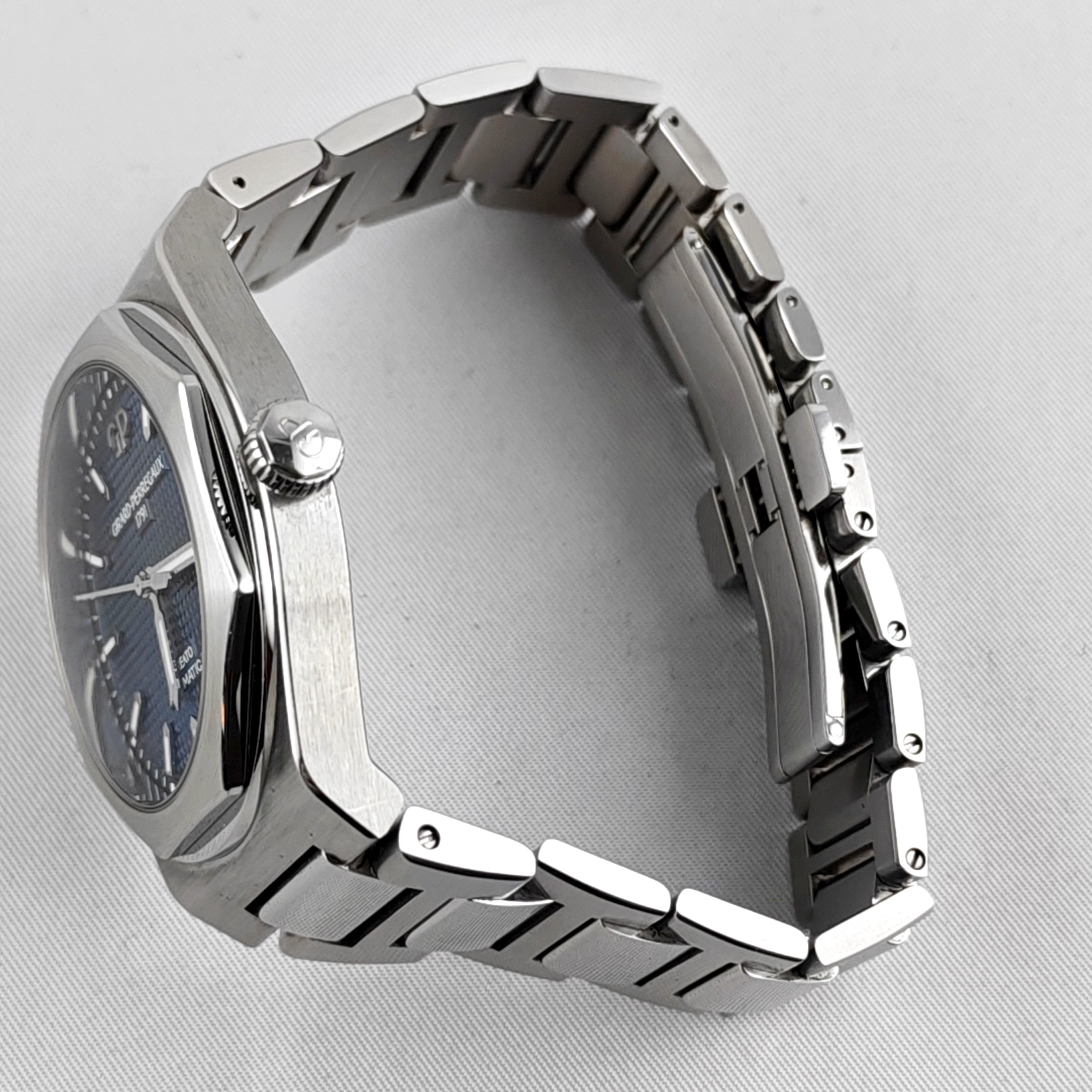Con un quadrante blu acceso su cui è stata fatta la lavorazione guilloché, monta una cassa di 38mm ed un calibro di manifattura.