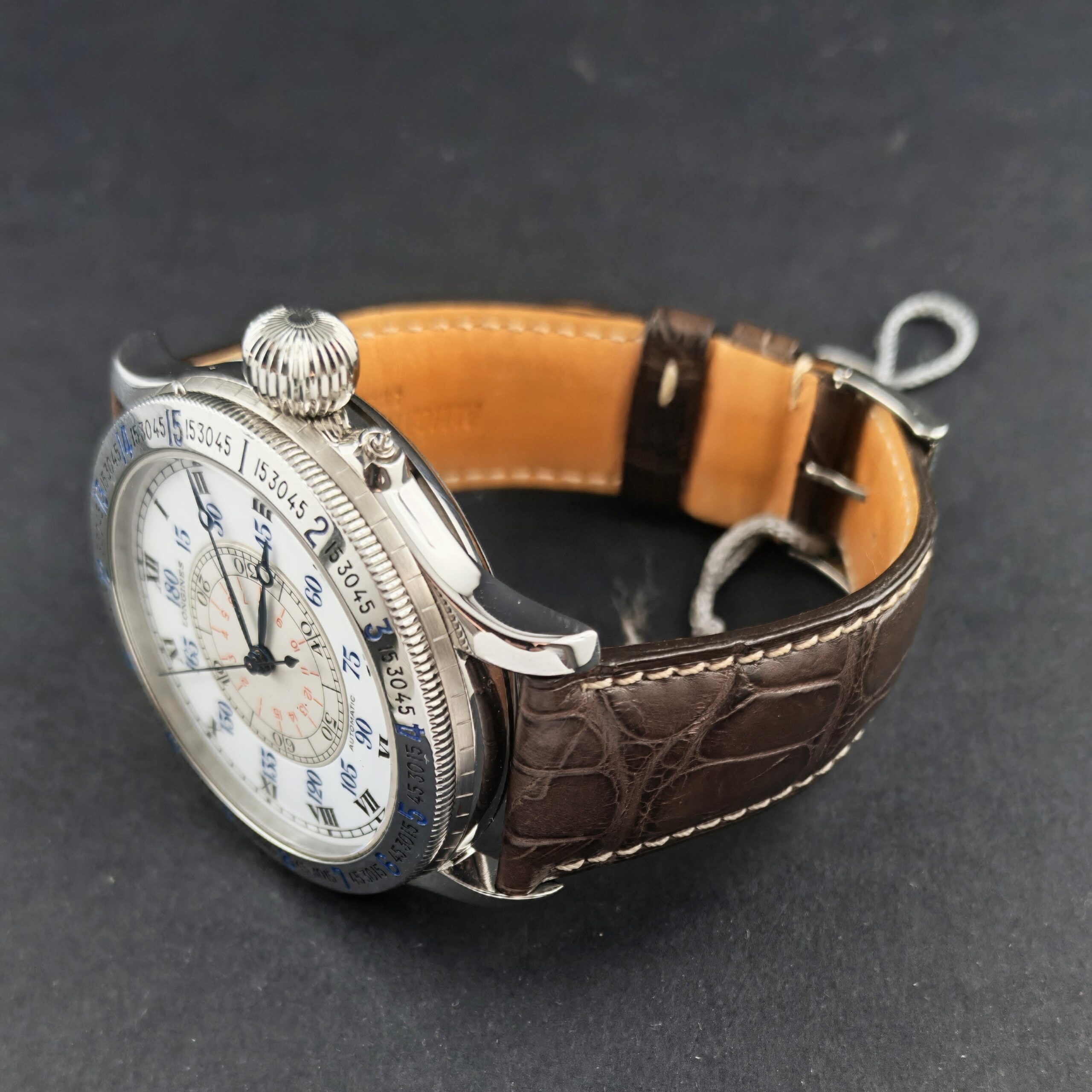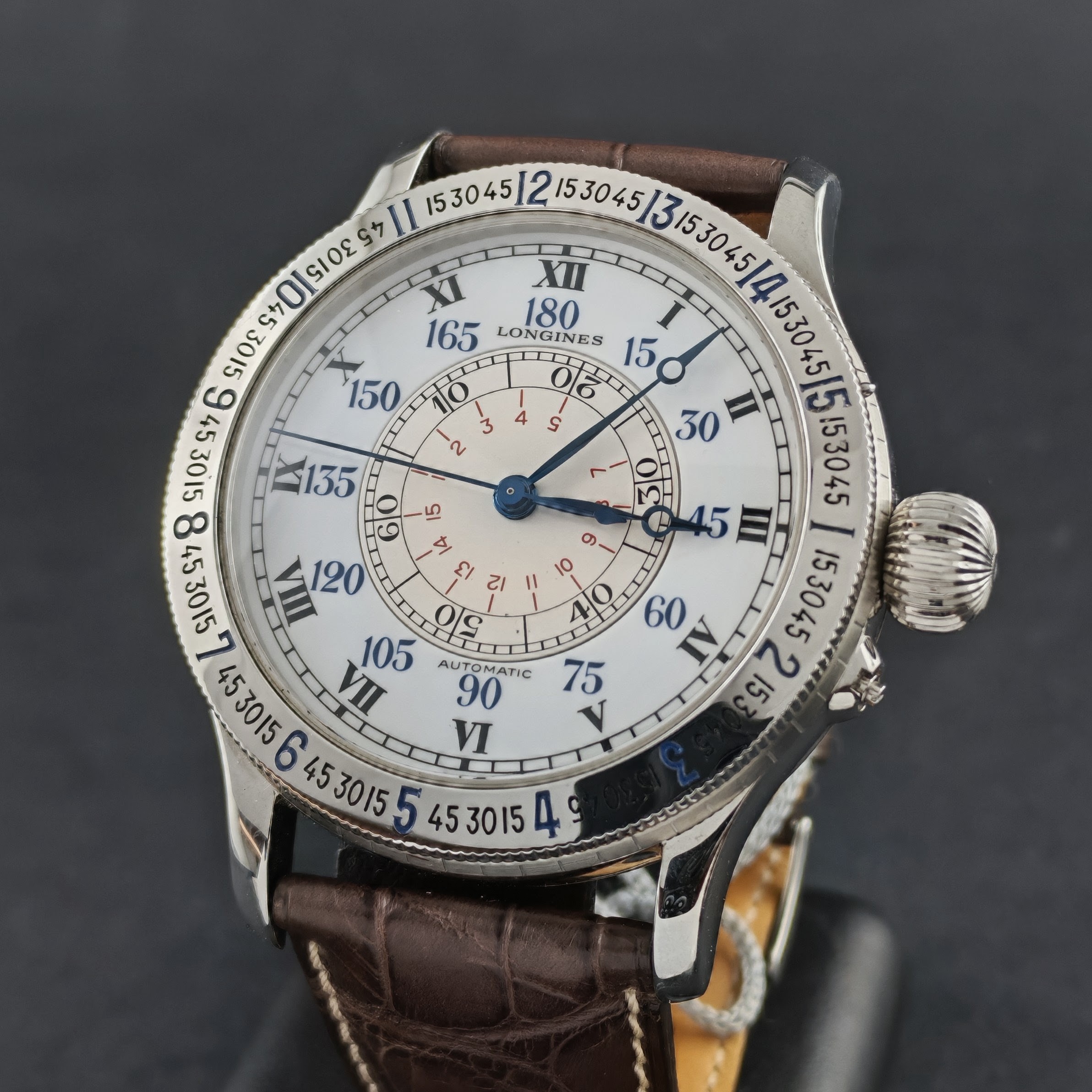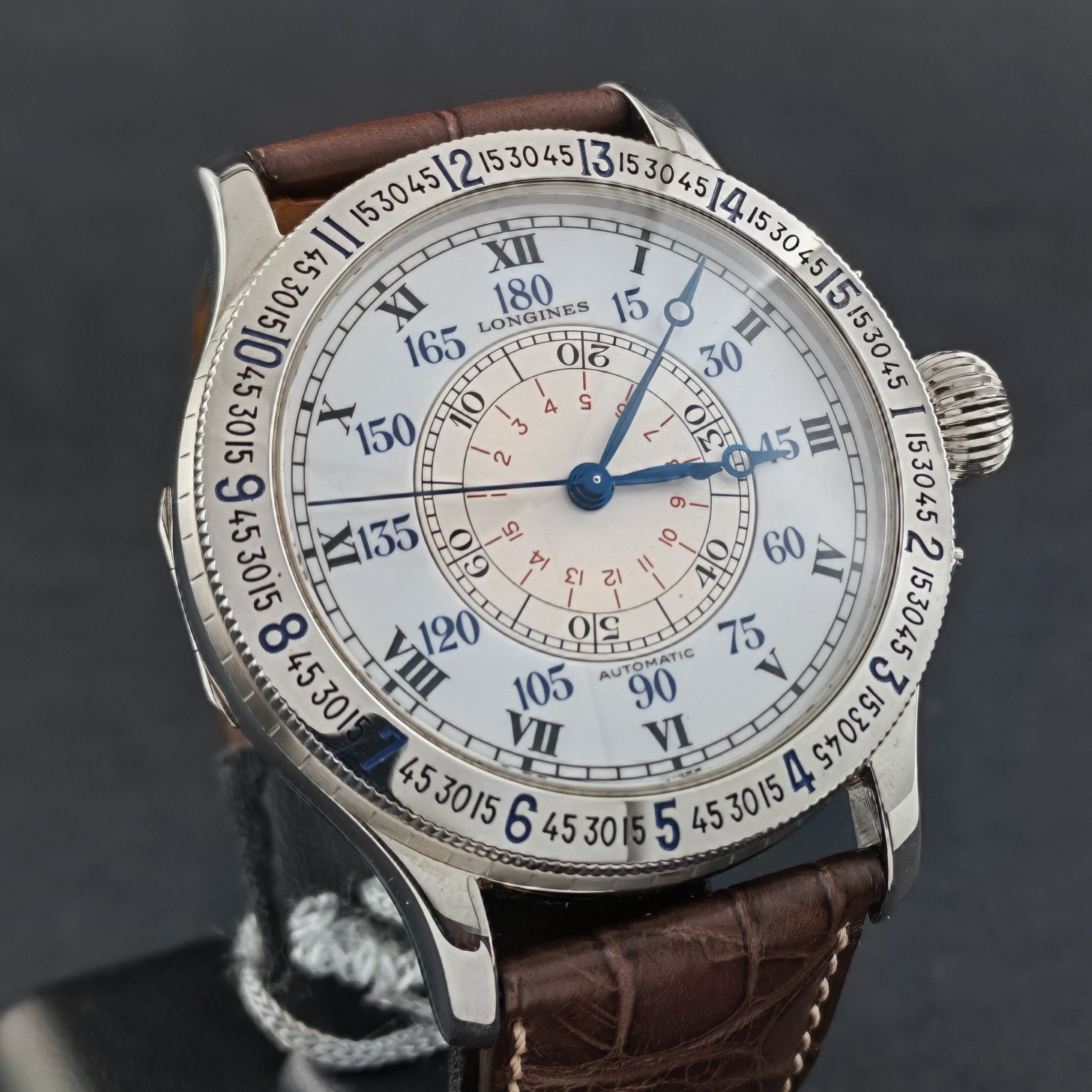 Dopo anni di assenza dalla produzione, nel 1987 Longines ha rilanciato il modello per celebrare i 60 anni dall’impresa di Lindbergh, con una riedizione da 38 mm dotata di fondello a vista e movimento ETA.