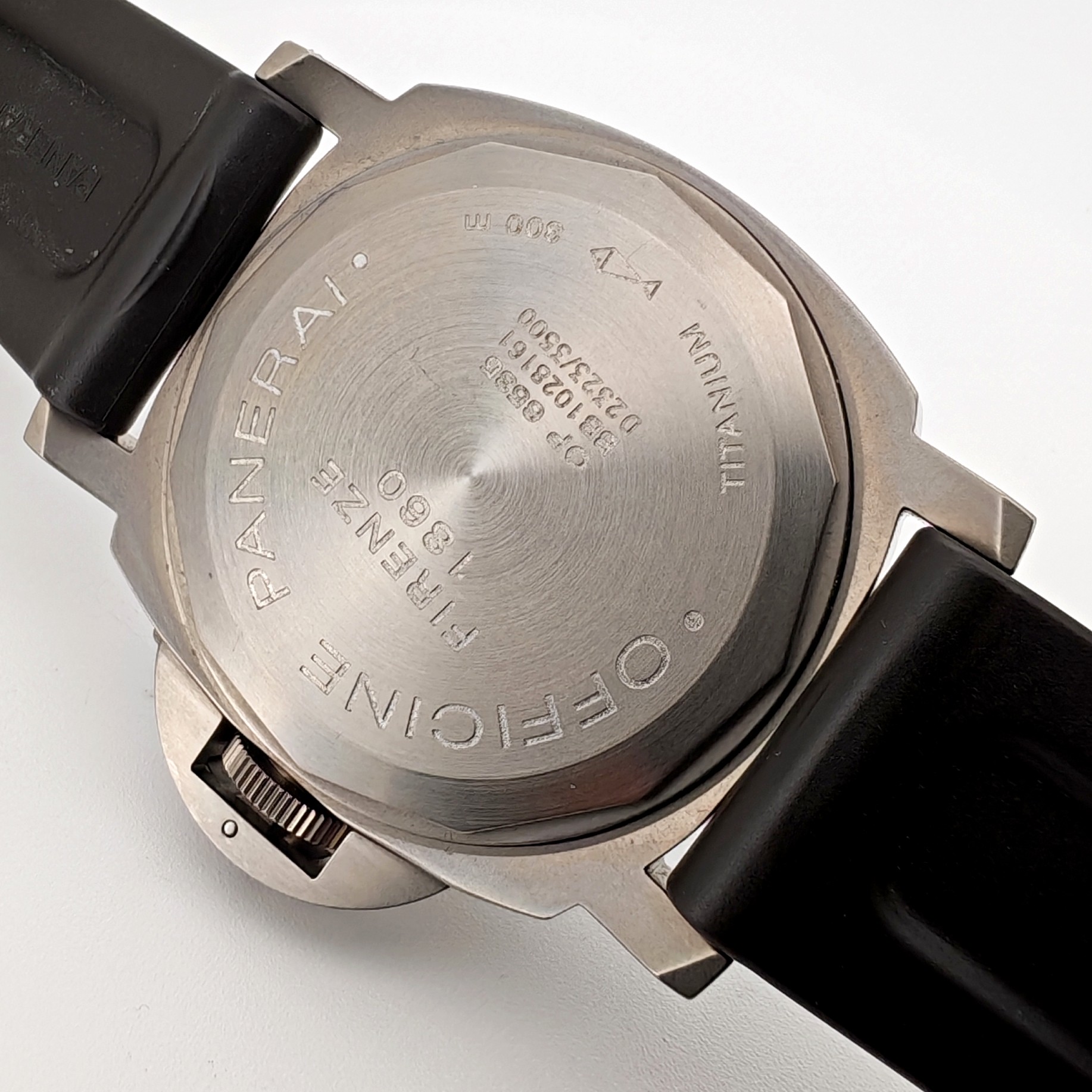 Vi presentiamo un classico Panerai Luminor Marina. Con un quadrante color tabacco molto raro, l’orologio appartiene ad una serie limitata di soli 3500 pezzi. Monta la famosa cassa in titanio che, nonostante le grandi dimensioni, rende l’aderenza al polso molto gradevole insieme al cinturino in gomma.