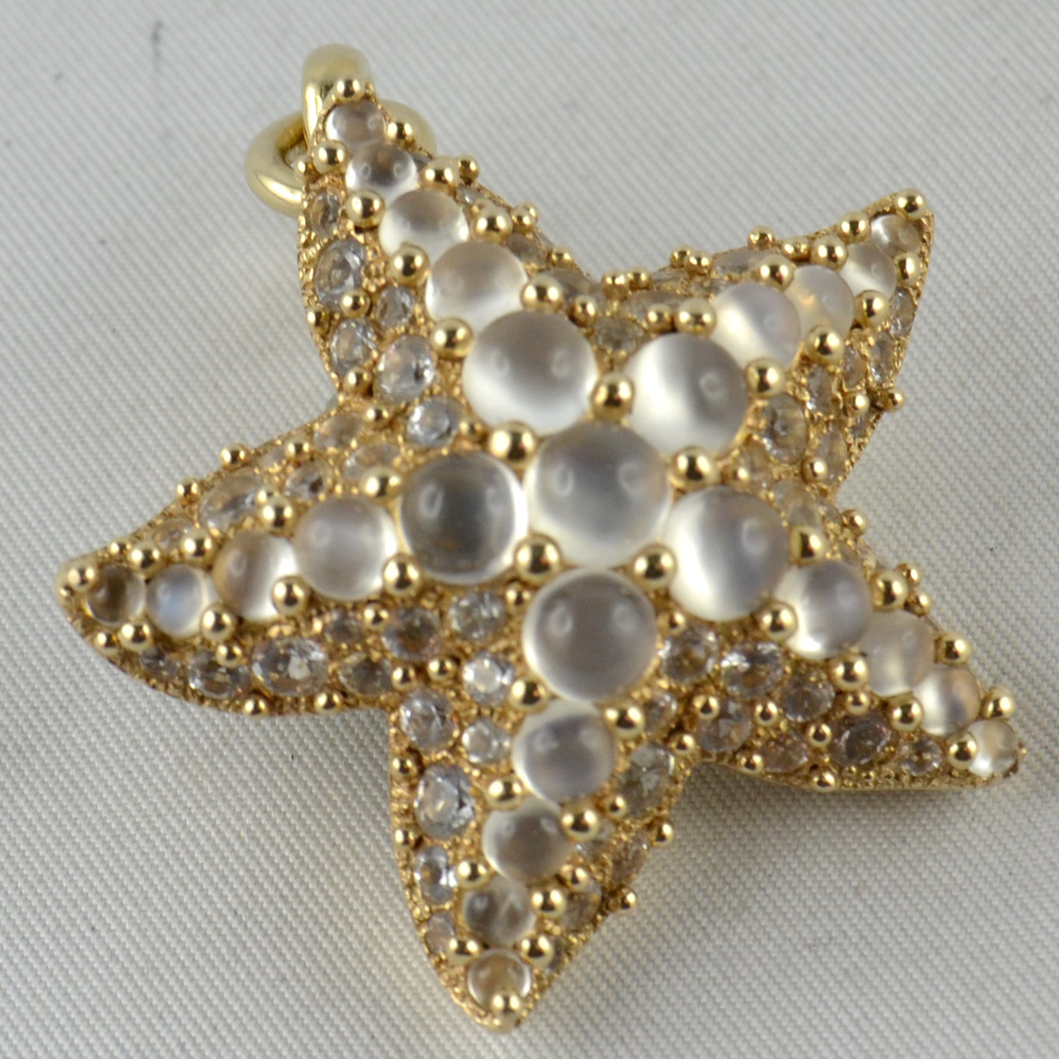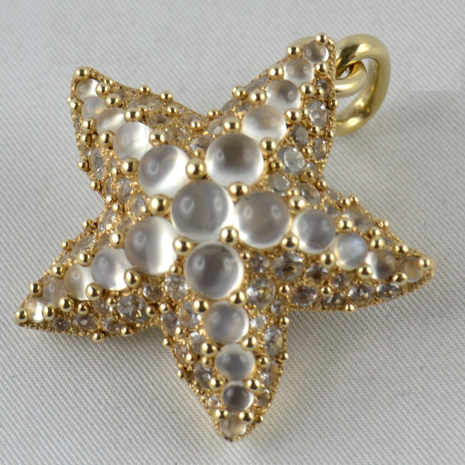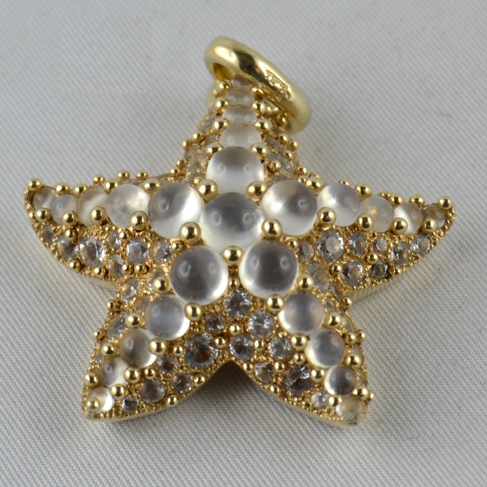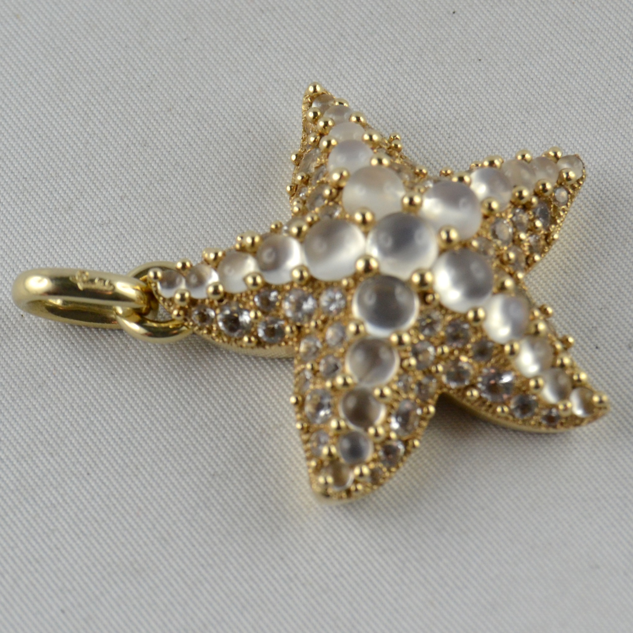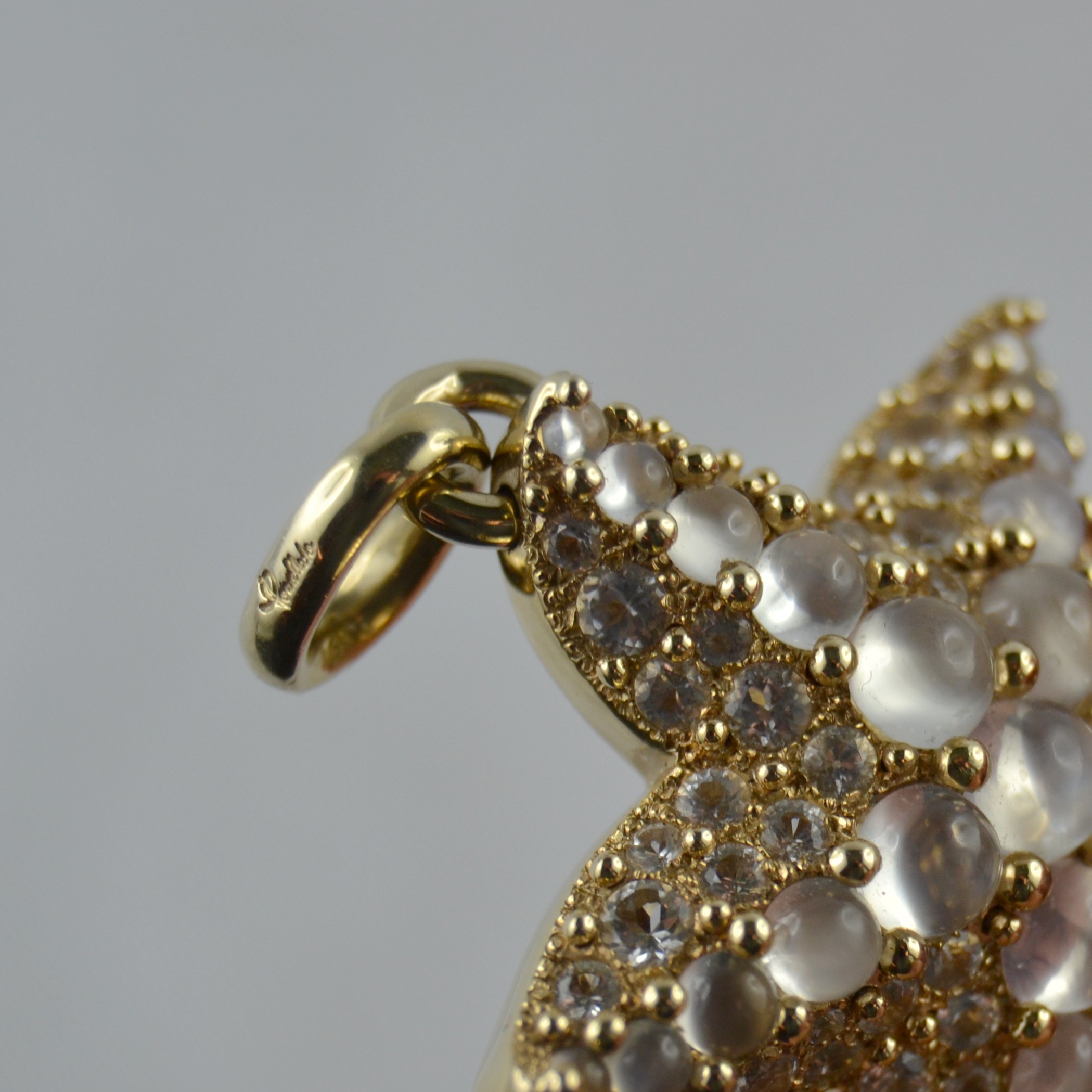 Splendido ciondolo Pomellato collezione “Sirene” in oro giallo e pietre di luna, del peso di 20,98g.