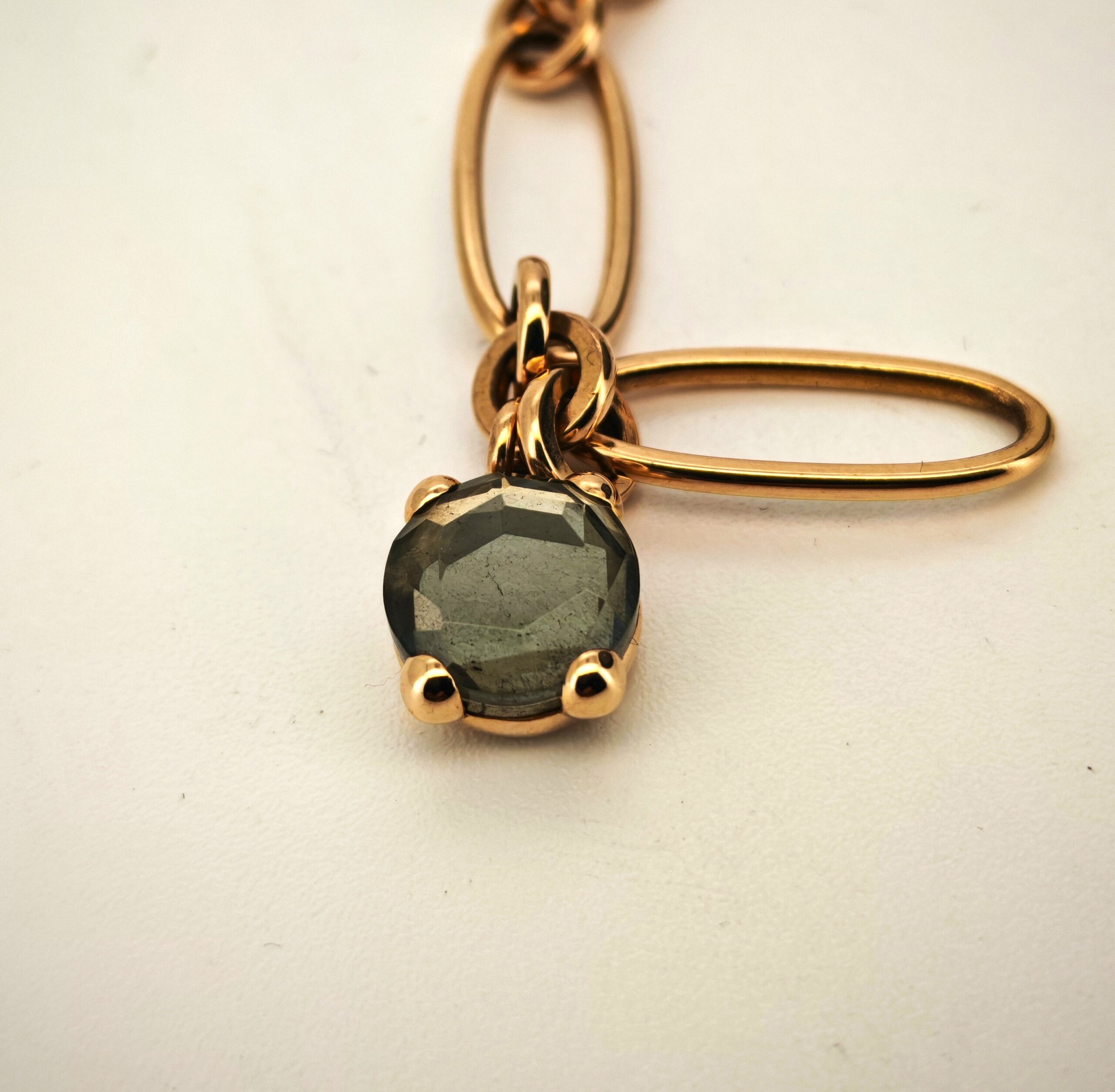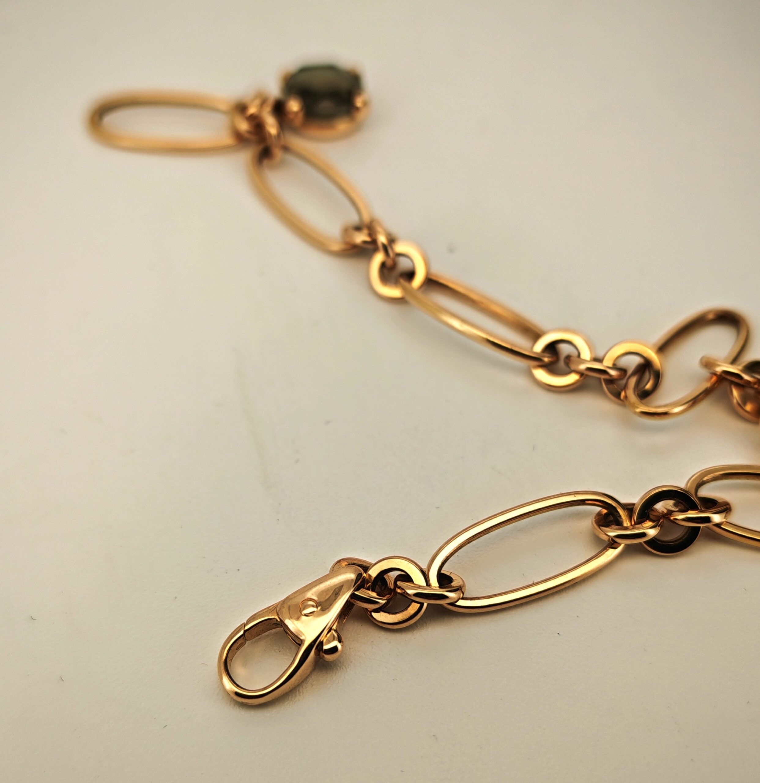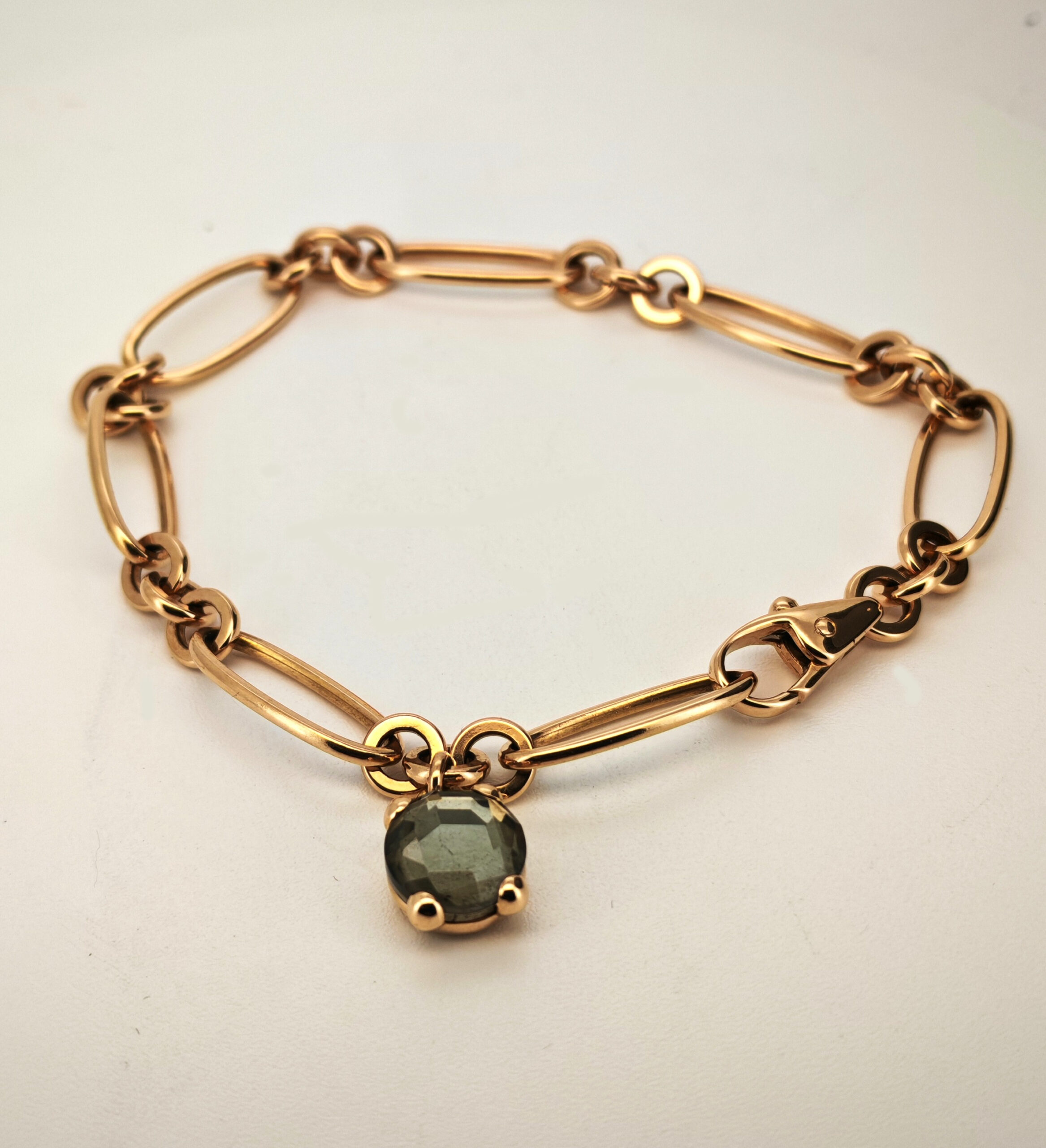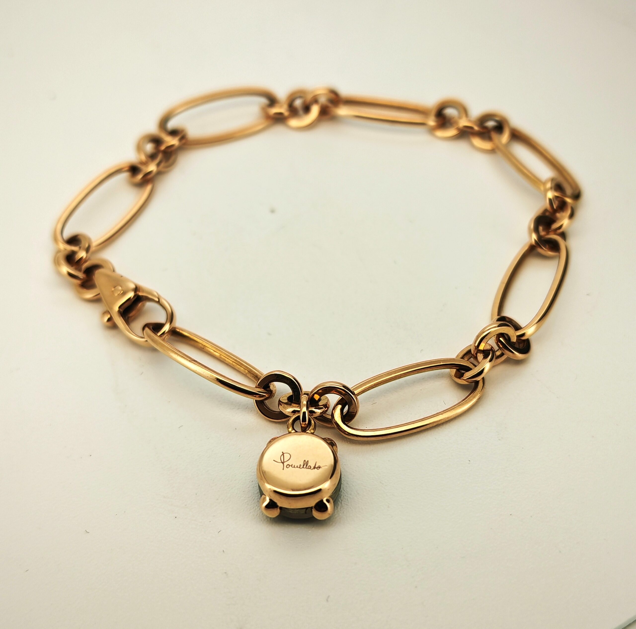 Vi presentiamo un elegante bracciale Pomellato appartenente alla collezione “Narciso”. Il bracciale, interamente in oro rosa, monta una pietra in prasiolite.