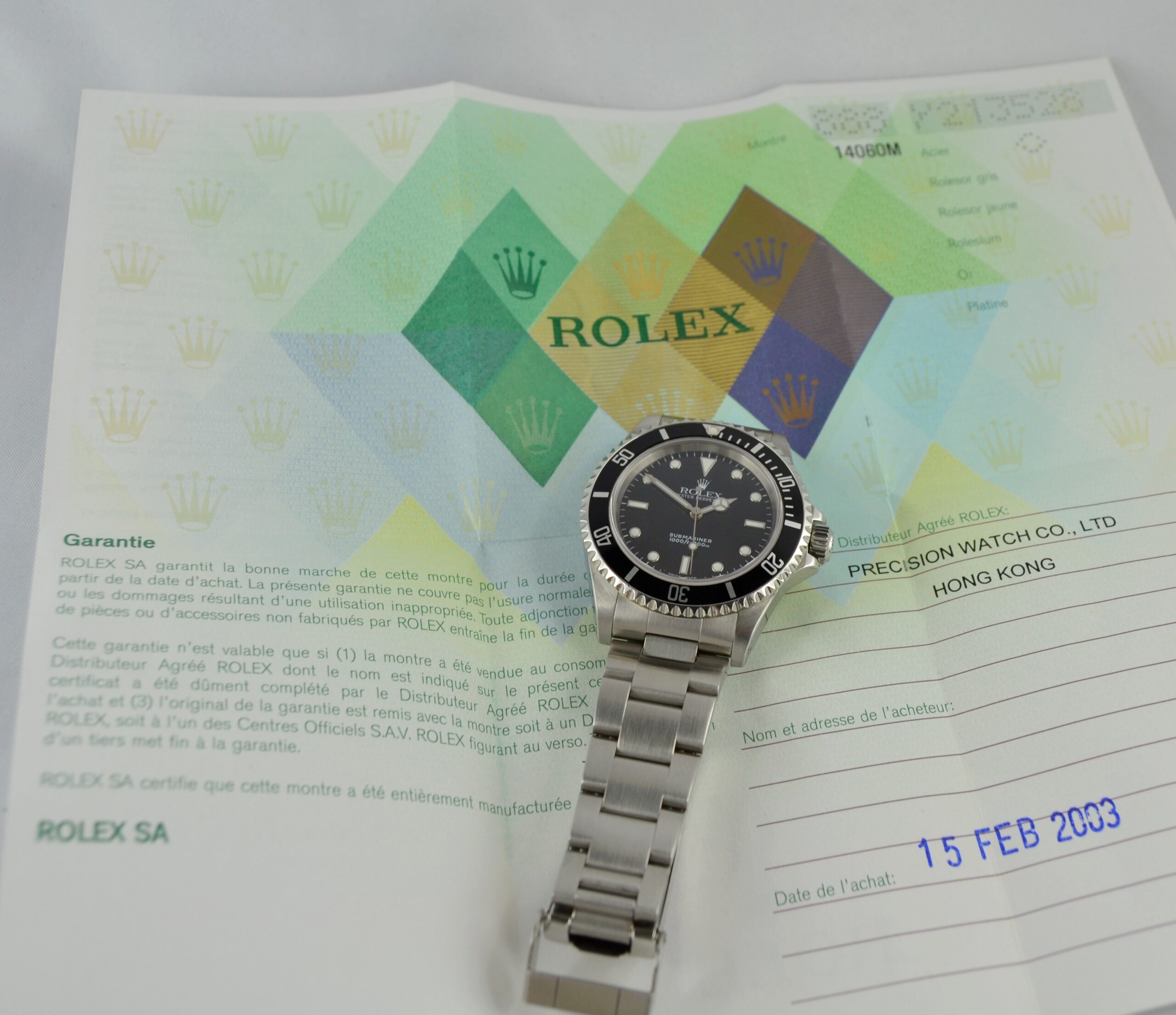 Vi presentiamo un classico Rolex Submariner vintage con referenza 14060m con un corredo completo di scatola e garanzia originali.