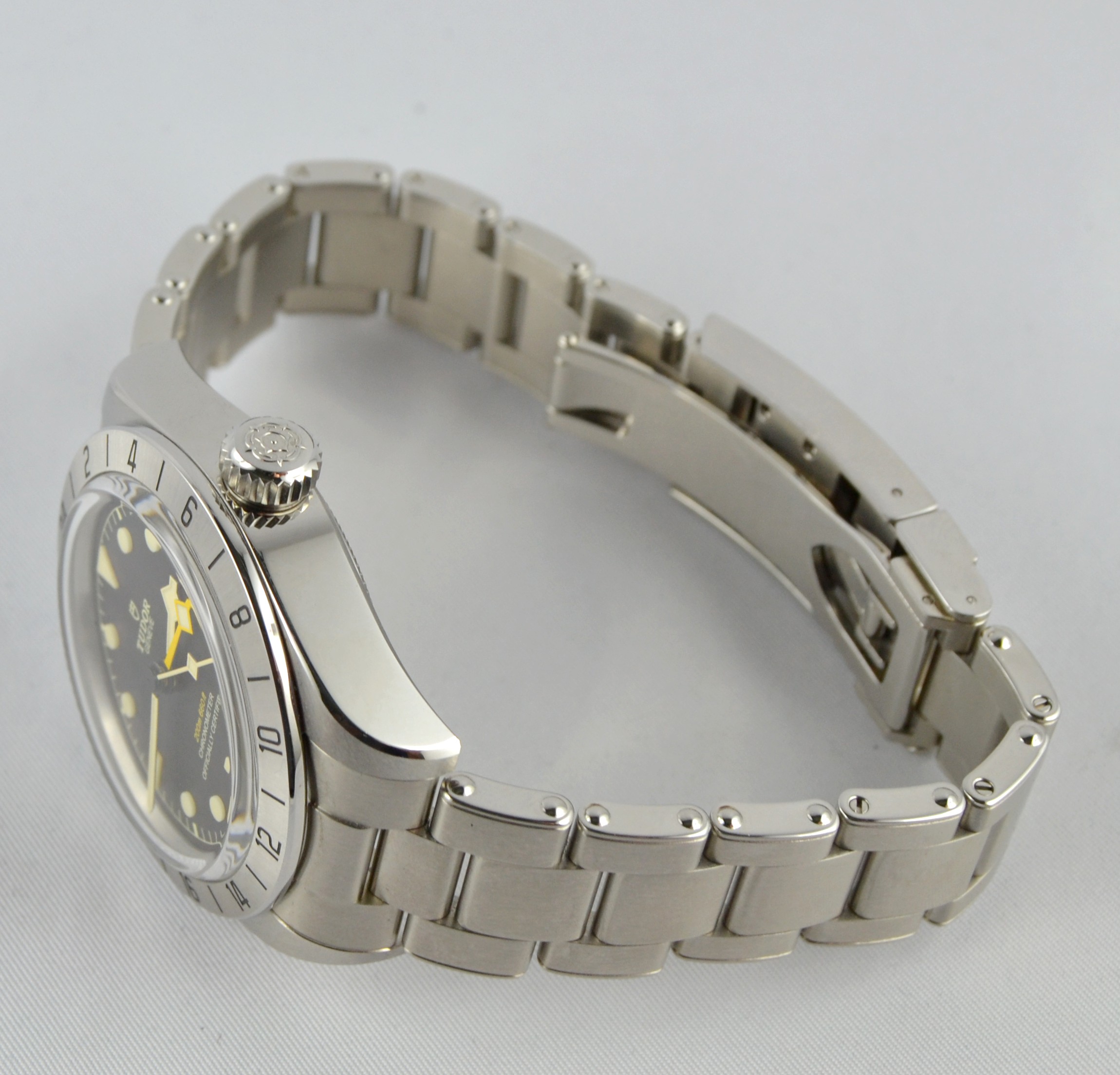 Di grande leggibilità grazie agli indici e alle lancette bianche su sfondo nero, è un vero pezzo forte della Maison Tudor.